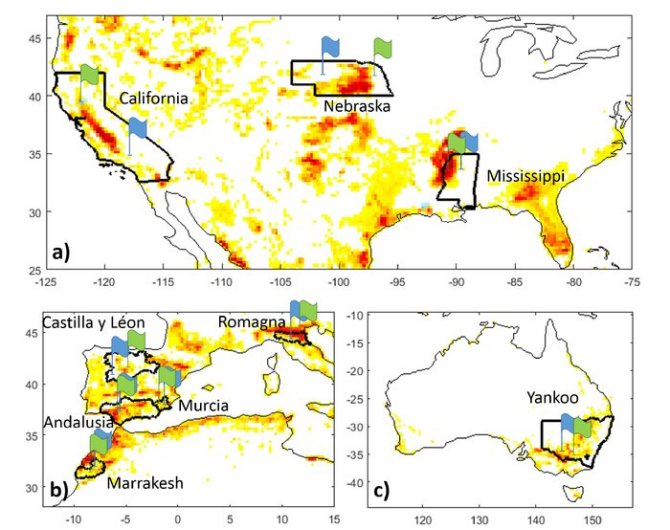 Como explica Luca Brocca, del Instituto de Investigación para la Protección Geo-Hidrológica (IRPI) del Consejo Nacional de Investigaciones Italiano (CNR): “Como primer paso para demostrar el aprovechamiento de este tipo de mediciones por satélite, elegimos nueve lugares en Estados Unidos, Europa, África y Australia”.