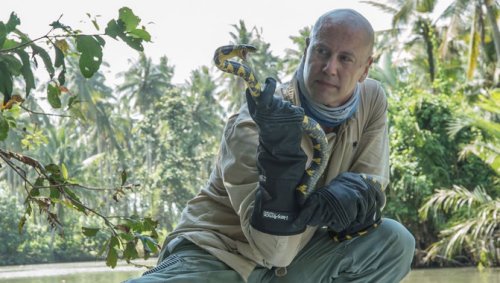 El investigador Bryan Fry sostiene una serpiente pariente de la arbórea marrón. (Foto: Foto cedida por el autor)